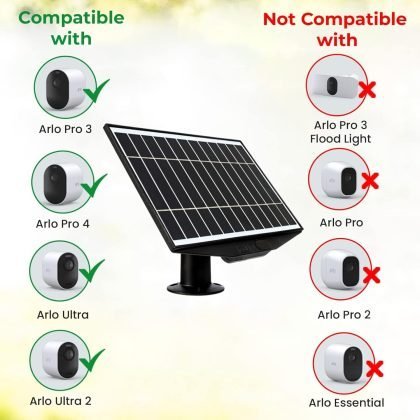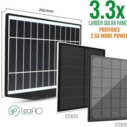 The Leaf10 8W Solar Panel is engineered to keep your Ring Outdoor, Stick Up, and Spotlight cameras powered even through cloudy days. Its larger 8-watt high-efficiency panel captures maximum sunlight for increased recording frequency, continuous video recording, and better low-light charging performance. Designed for durability and precision, it ensures consistent power, improved uptime, and greater peace of mind for your Ring security system.